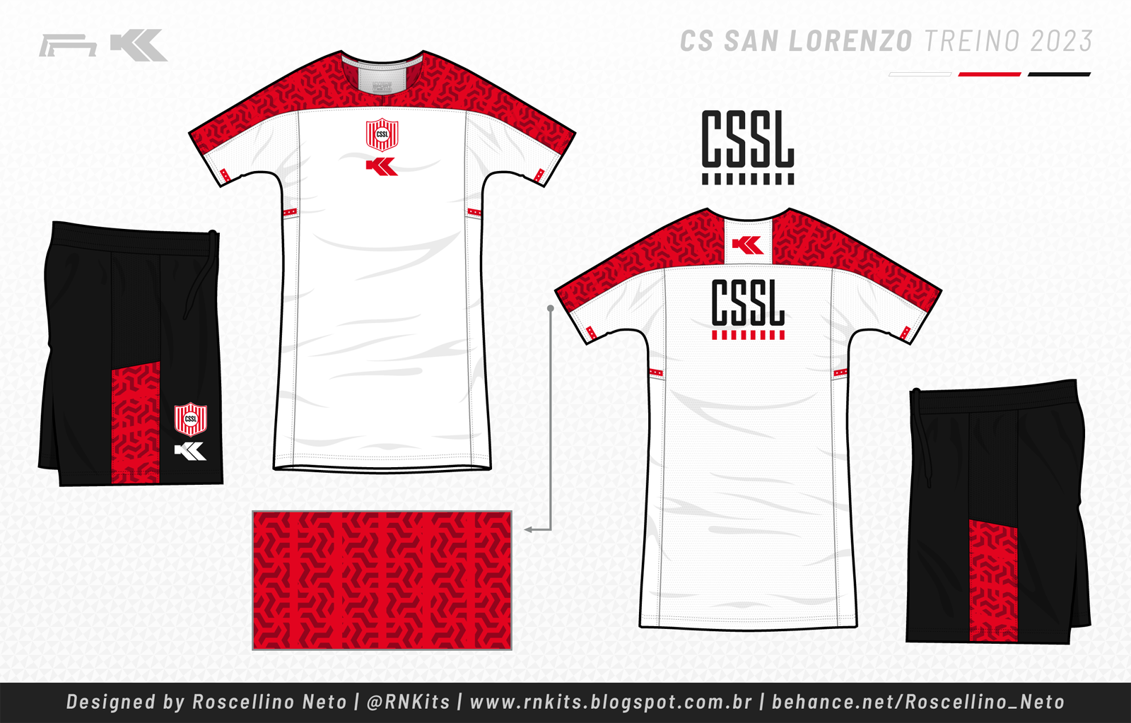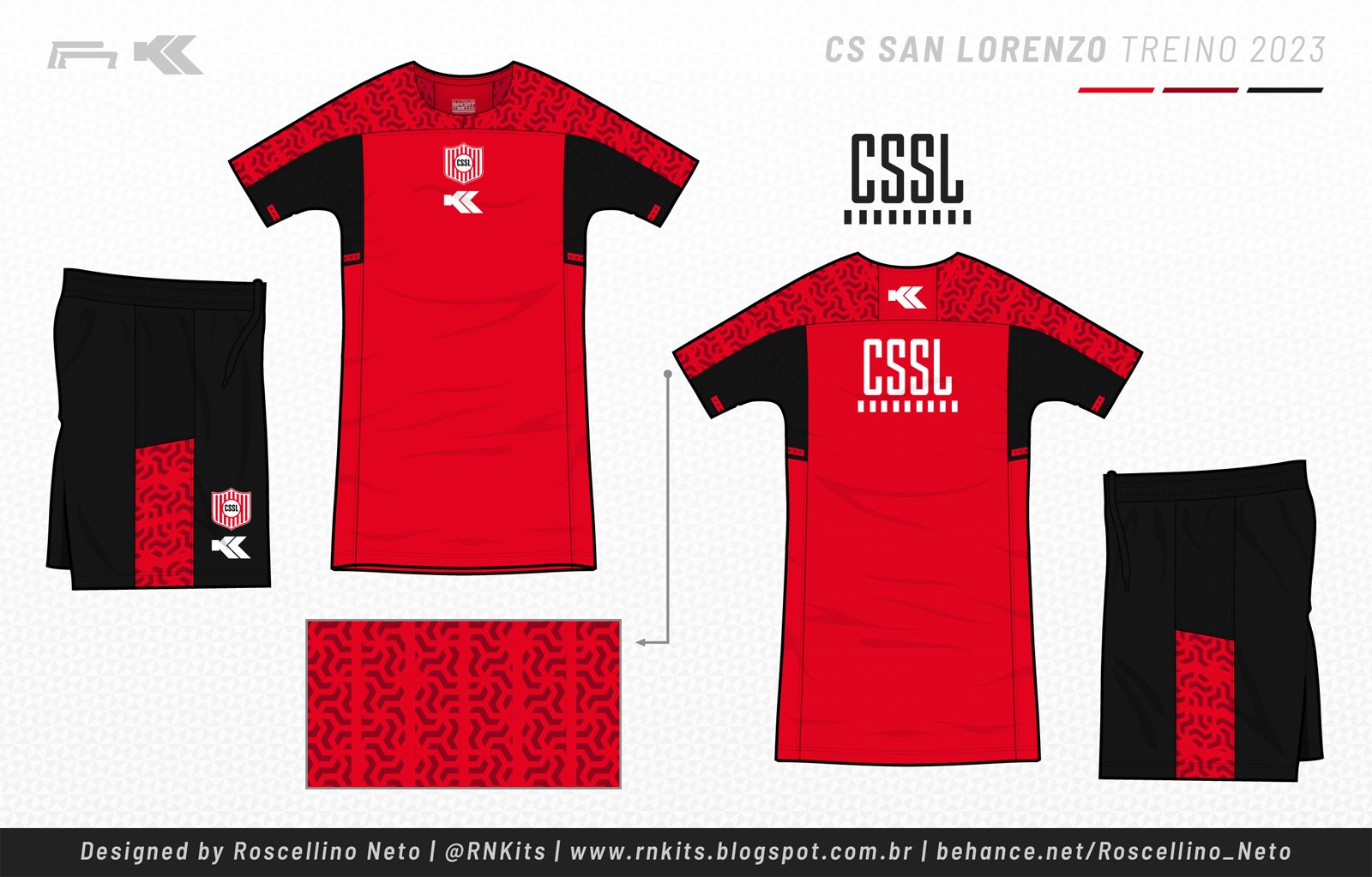 Para esse ano, também fiz os kits do San Lorenzo, com uma mudança no padrão. O primeiro kit é todo em vermelho e preto, bastante imponente.