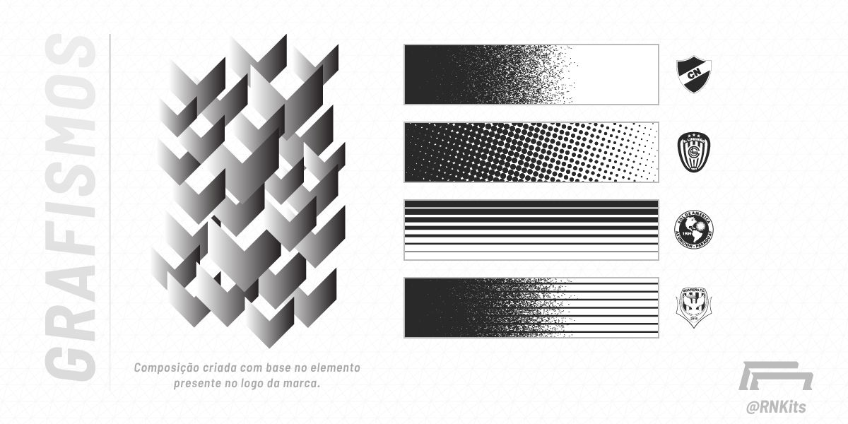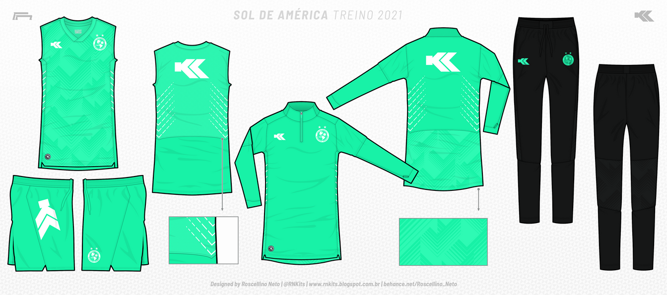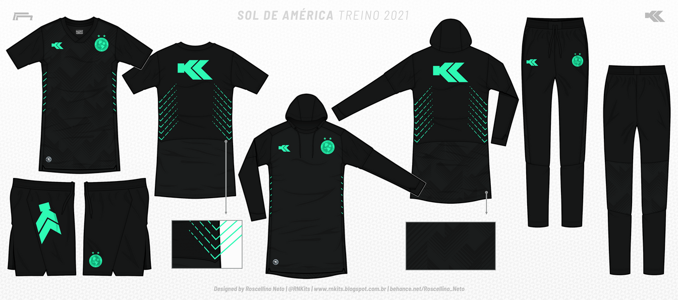 Todos os kits de jogo da marca utilizaram o template abaixo. A proposta central do template era utilizar os cortes de gola e barra, trazendo detalhes exclusivos para cada clube.