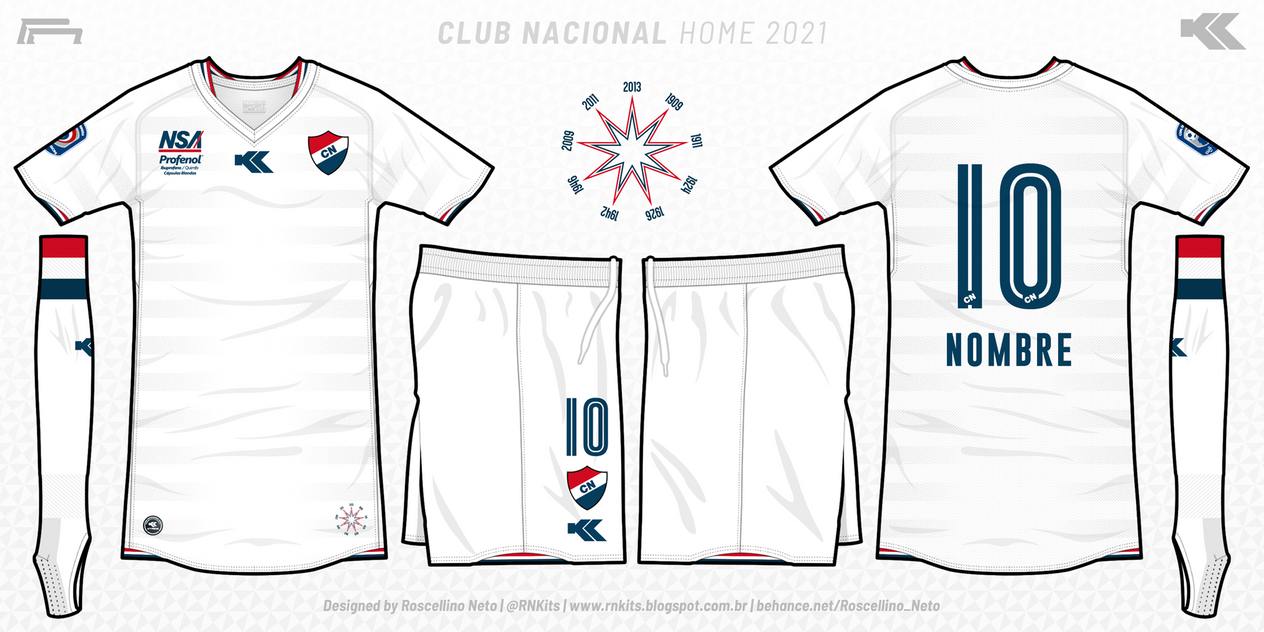 Por fim, trago algumas opções de uniformes que fiz nos templates. Dois kits home para o Nacional, e home e away para o Sol de América.